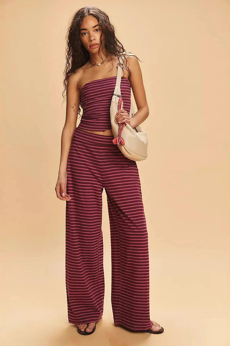 Meet the Elirah Set – your new off-duty essential with a touch of chic. Designed with a strapless bandeau top and matching wide-leg pants, this two-piece set is all about effortless style and all-day comfort. Crafted in soft, lightweight fabric with a flattering body-skimming fit, it’s perfect for lounging, brunch dates, or throwing on over swimwear.