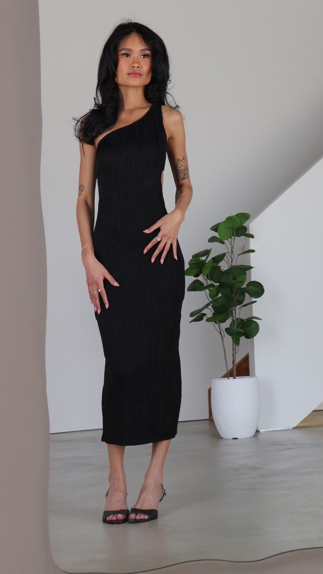 Perfect for cocktail parties, date nights, or elevated events, the Shelly Midi Dress is a timeless design with a modern twist — all about understated confidence.